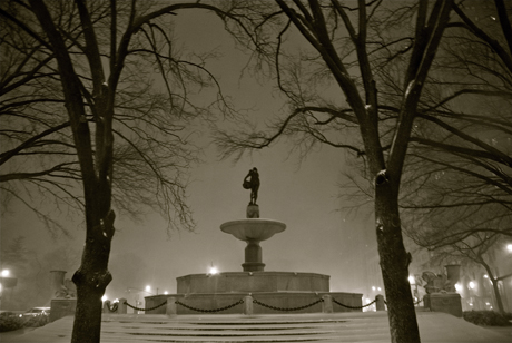 Out of the dark comes light. Frank Gimpaya's photography is of dark places,all in some degree becoming luminous, but well before dawn. In this mysterious darkness, we are present as silent observers.
